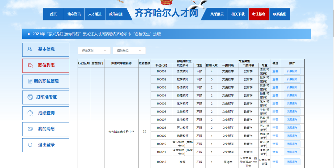 自本简章发布起,在相应岗位报名期间,报名人员可访问“齐齐哈尔人才网”(http://www.qqhercw.gov.cn)进行网上报名,需确保填报信息及提供佐证材料真实有效。