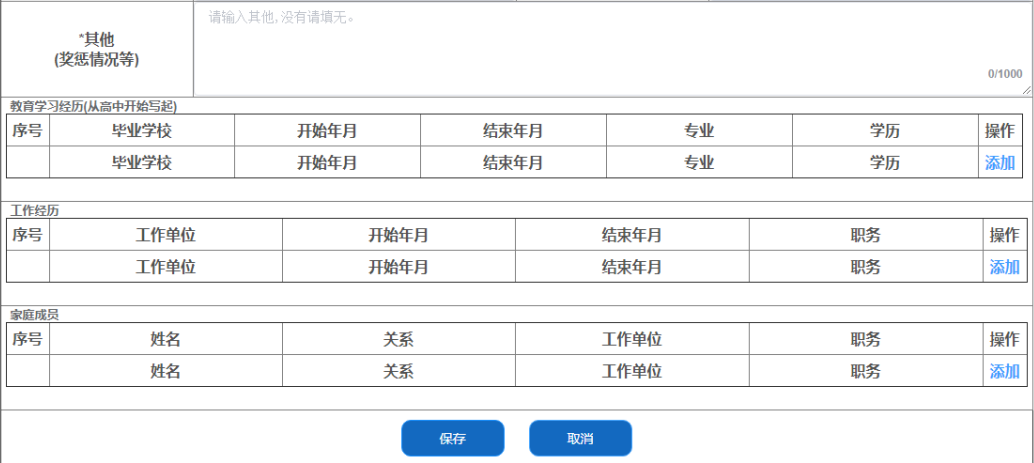 教育经历从高中开始填写,工作经历连续填写,待业情况需如实填写。